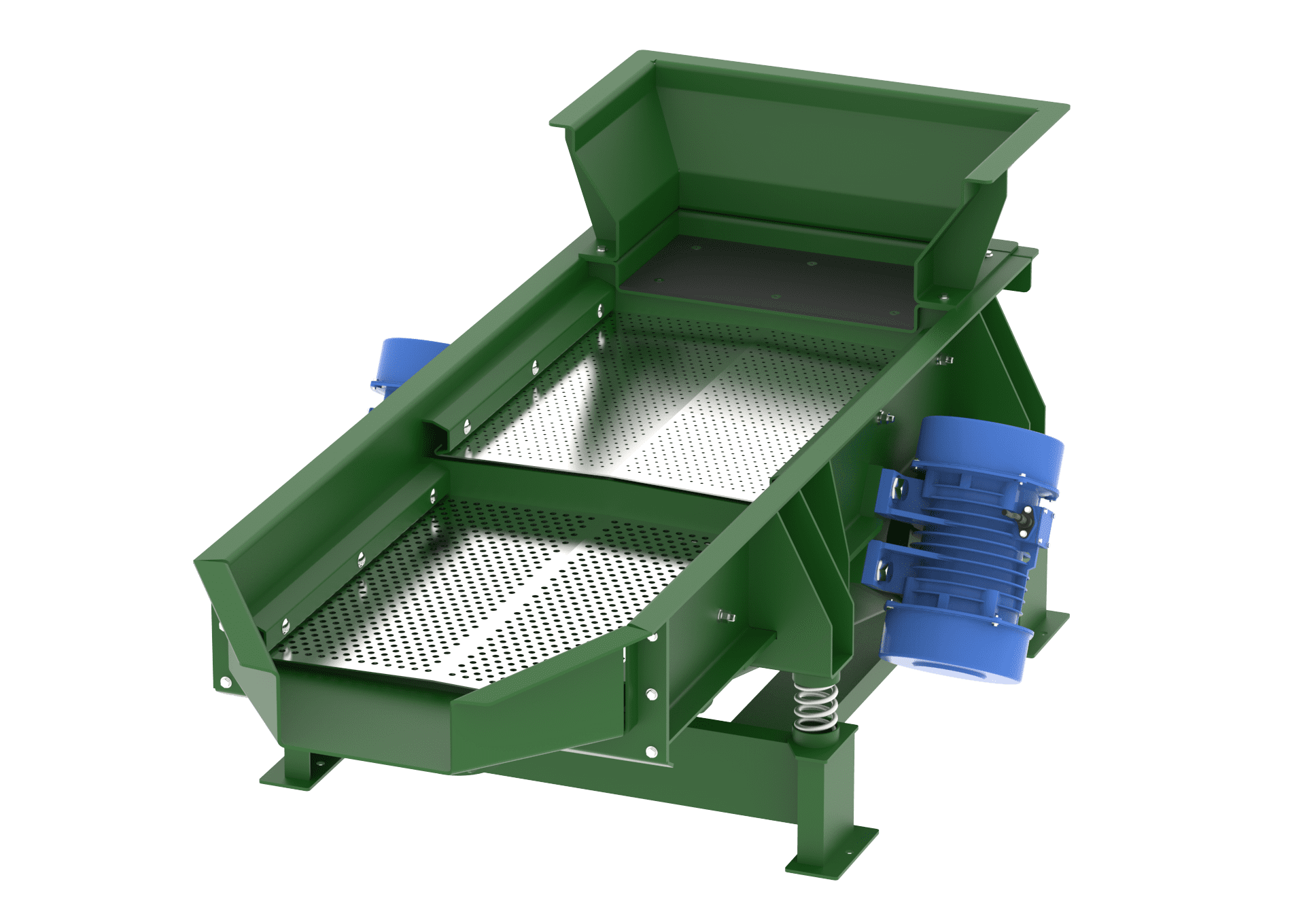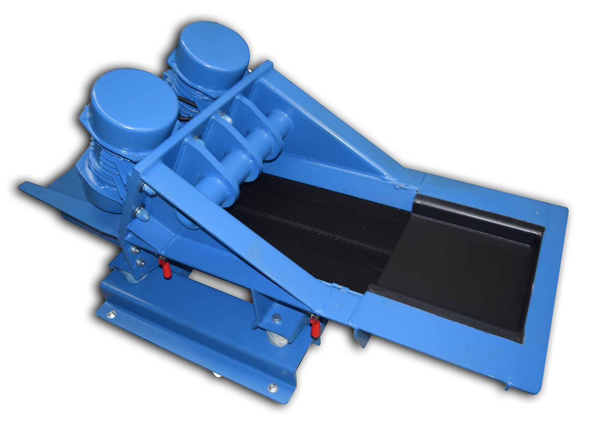 Often with equipment one of the first things that comes up in initial discussions is the design height or discharge height of the unit. With vibratory feeders (EMF) and screeners (EMS) there’s always a concern about the product discharge height, as the equipment is often feeding material downstream to other devices. One of the options that impact the design and therefore the height of the unit is the location of the vibrators. Typically on vibratory feeders and screeners, the default location is “below deck” where the vibrators are attached on the underside of the unit. With below deck vibrators, the unit will be required to have a somewhat higher discharge height to accommodate the vibrators compared to a similarly sized unit where we might “side mount” or even in some applications mount the rotary electric vibrators “above the deck.”